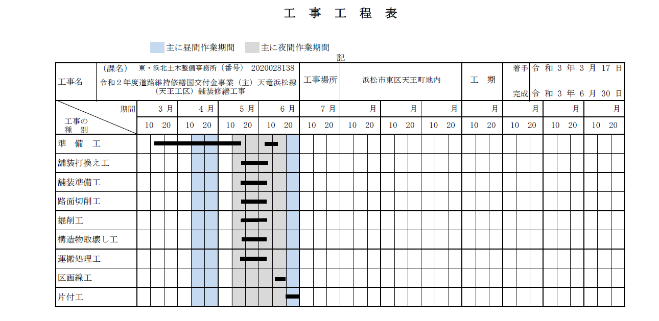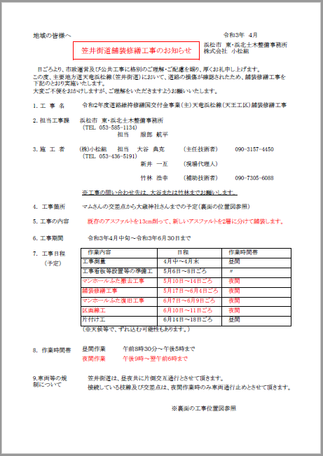 工事名 : 令和2年度道路維持修繕国交付金事業(主)天竜浜松線