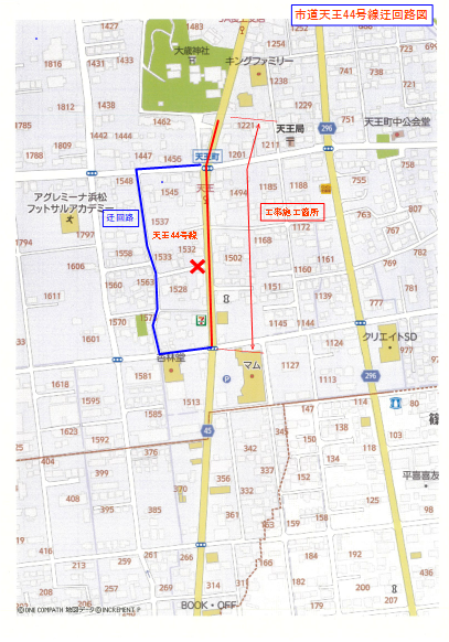 市道天王44号線の迂回路図です。