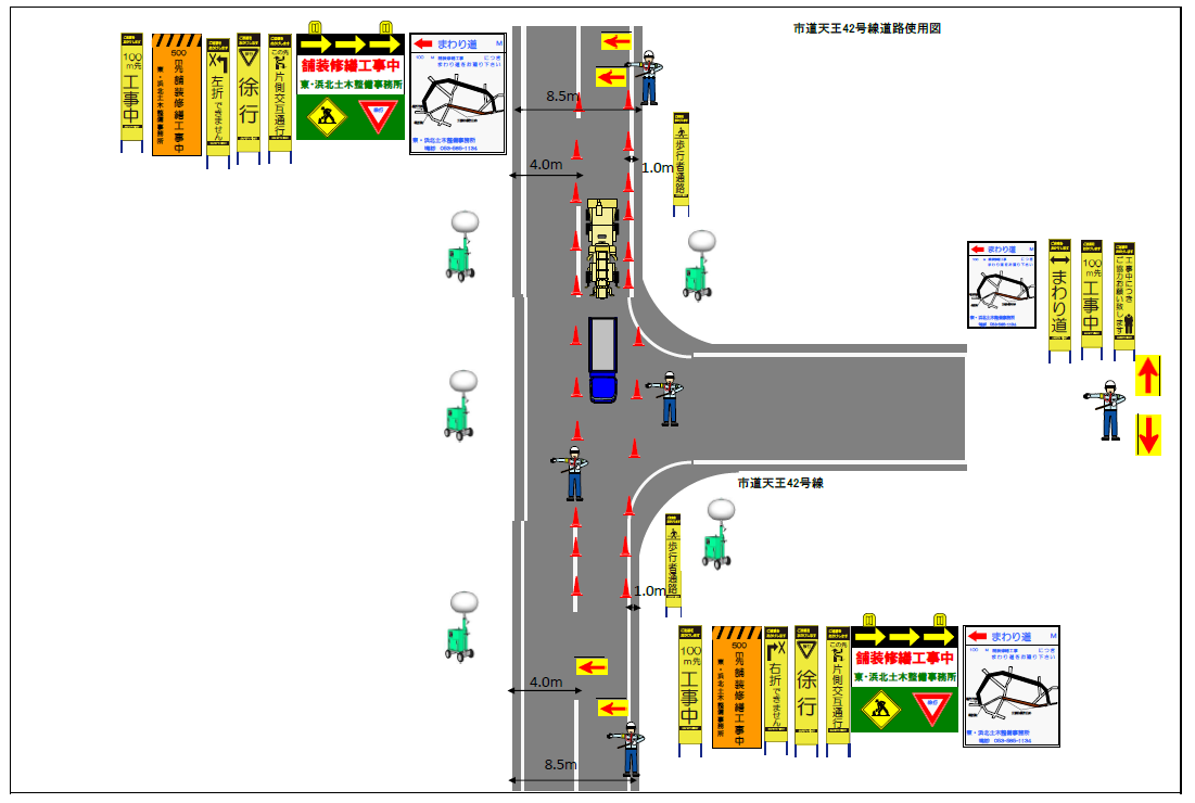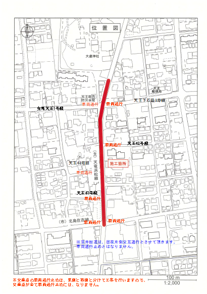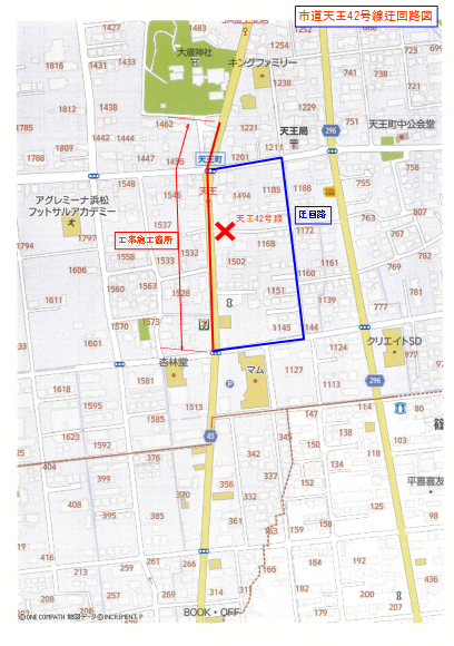 市道天王42号線の迂回路図です。