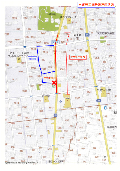 市道天王45号線の迂回路図です。