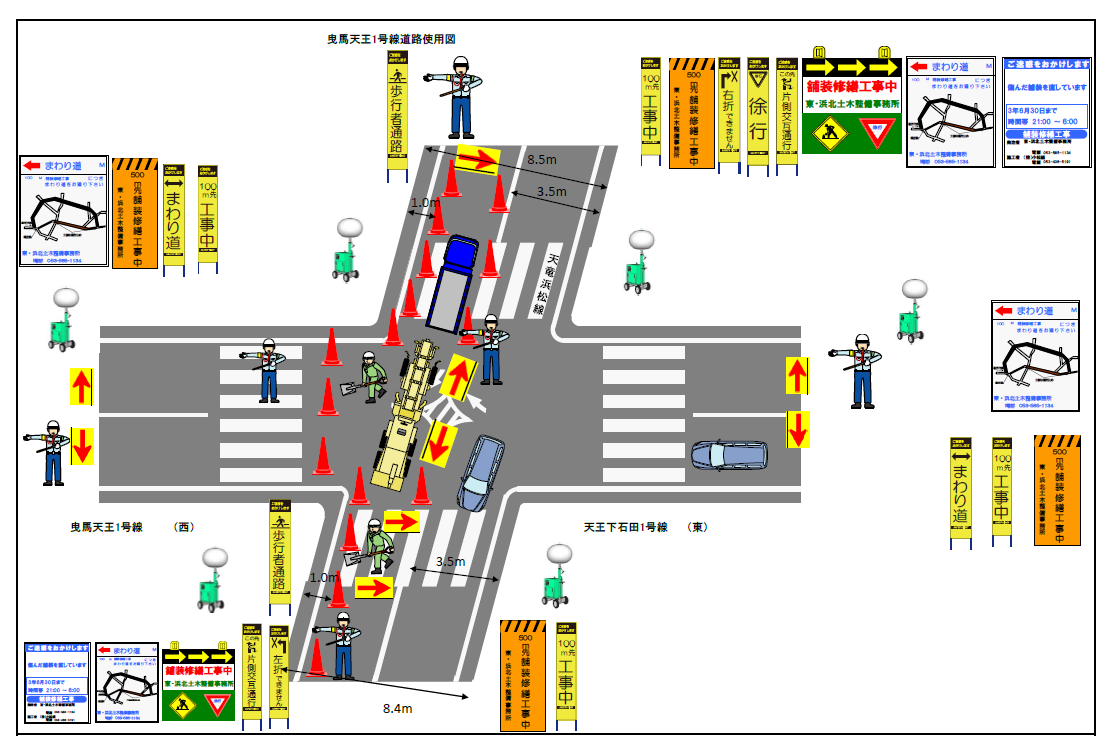 天王町交差点東側施工時(夜間)※浜松IC方面側