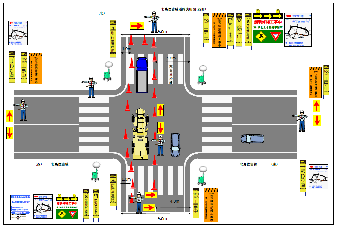 笠井街道施工時(昼間)※測量等軽作業