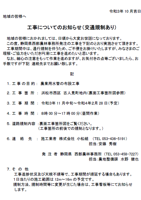 施工場所 : 浜松市西区古人見町 地内