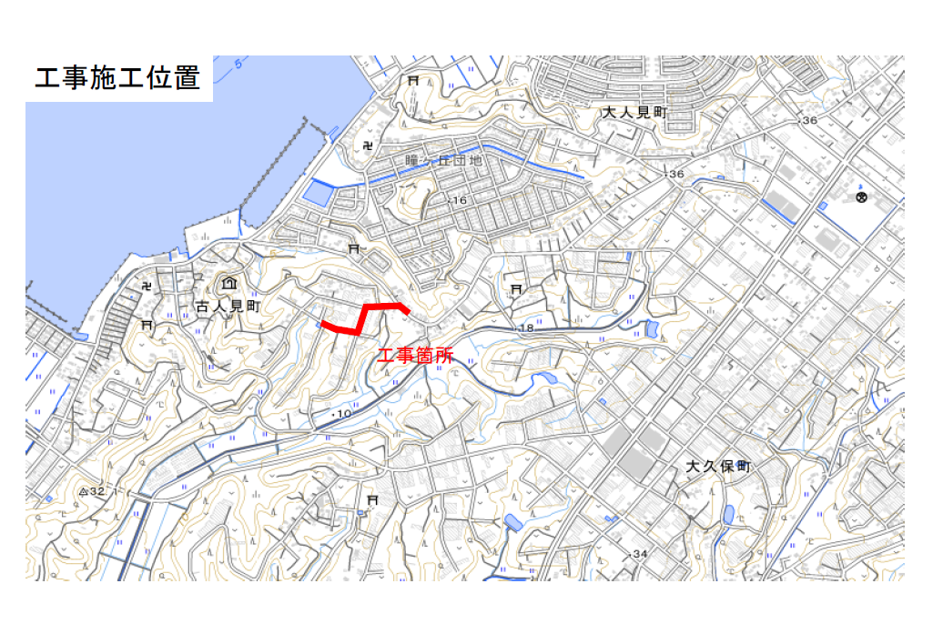位置図 :市道古人見11号、12号、14号の工事を行います。