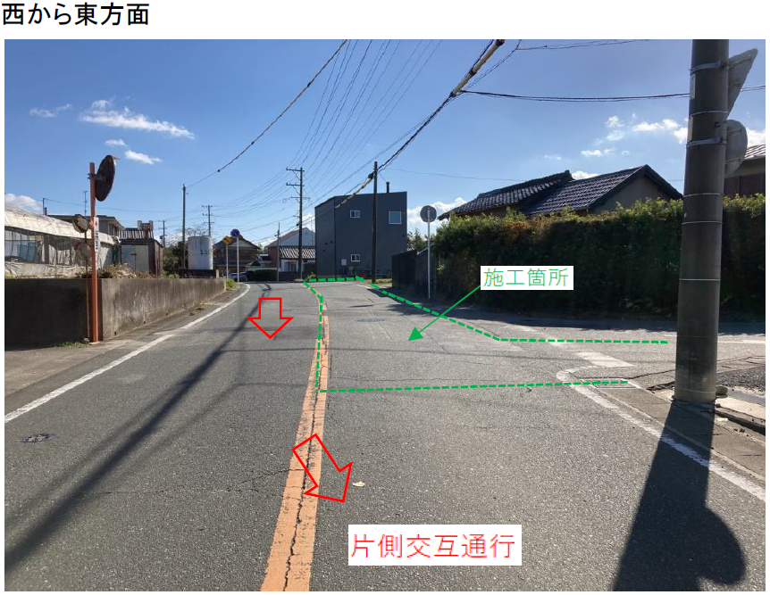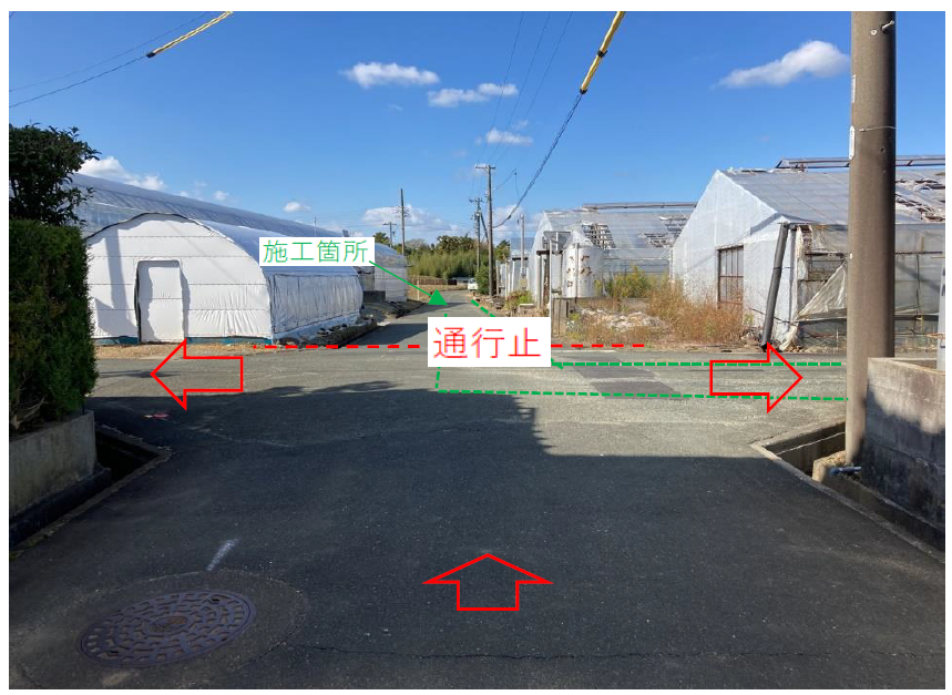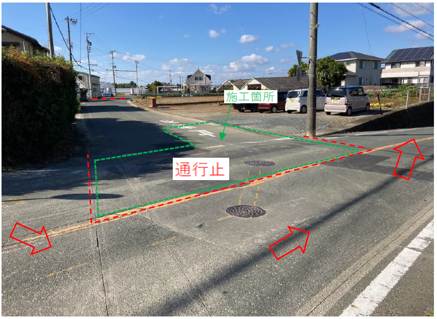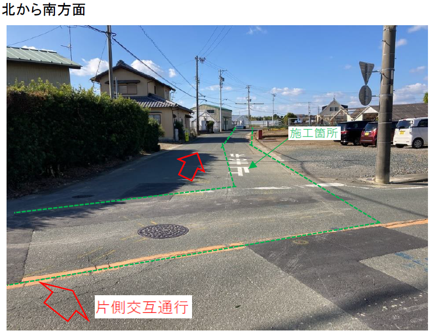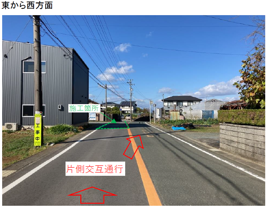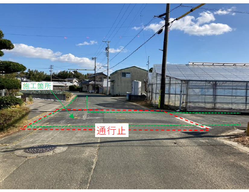 施工箇所は車両通行止め又は片側交互通行になります。