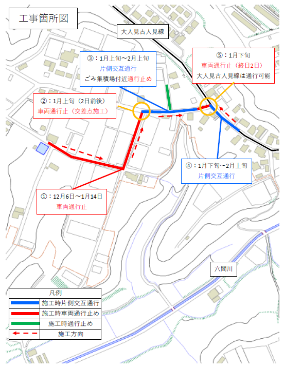 市道古人見11号線、12号線(横断)の工事を行っている時の